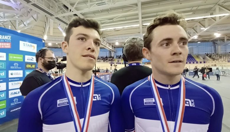 Piste - FranceLa paire roubaisienne composée de Thomas Boudat et Valentin Tabellion (Go Sport Roubaix Lille Métropole) a poursuivi sa très belle semaine aux Championnats de France de cyclisme sur piste en décrochant le titre national sur l'Américaine. Dans une très belle ambiance au Stab Vélodrome de Roubaix, les deux hommes ont très vite pris de l'avance aux points pour dominer les duos Quentin Lafargue-Donavan Grondin et Benjamin Thomas-Dorian Carreau. Les deux Nordistes ne se quittent plus cette semaine, puisqu'ils avaient déjà été sacrés ensemble en poursuite par équipe mercredi soir. Egalement titrés en individuel, respectivement sur l'élimination et l'omnium, Boudat et Tabellion ont exprimé tout leur bonheur après la cérémonie protocolaire.