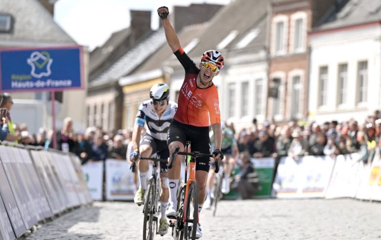 4 Jours de DunkerqueLa tant attendue 4e étape et étape reine de ces 4 jours de Dunkerque / Grand Prix des Hauts-de-France, c'était ce samedi 17 mai ! La traditionnelle journée phare de l'épreuve nordiste organisée autour de Cassel a encore une fois permis de décanter le classement général, avec un parcours durci cette année. Un circuit long de 21,3 km était à effectuer cinq fois, avec la montée de Cassel par la porte de Dunkerque avant d'arriver sur la célèbre rue d’Aire et sa porte mythique (1 km à 8.6%) où le Championnat de France 2023 s'était joué. Malheureusement, le principal fait de course restera la chute et l'abandon du maillot rose Axel Zingle (Visma | Lease a Bike) à 24 bornes de l'arrivée. Outre cet incident, la course s'est disputée à un rythme intense qui a fortement écrémé le peloton au fil des tours, la répétition des efforts et des difficultés faisant naturellement la sélection. Malgré une belle offensive de Sam Maisonobe (Cofidis) et Ben Swift (INEOS Grenadiers) dans le dernier tour, finalement repris de justesse dans l'ultime ascension de la Porte d'Aire, un maigre peloton s'y est joué la victoire... et c'est le Britannique Sam Watson qui s'est montré le plus costaud au sommet !