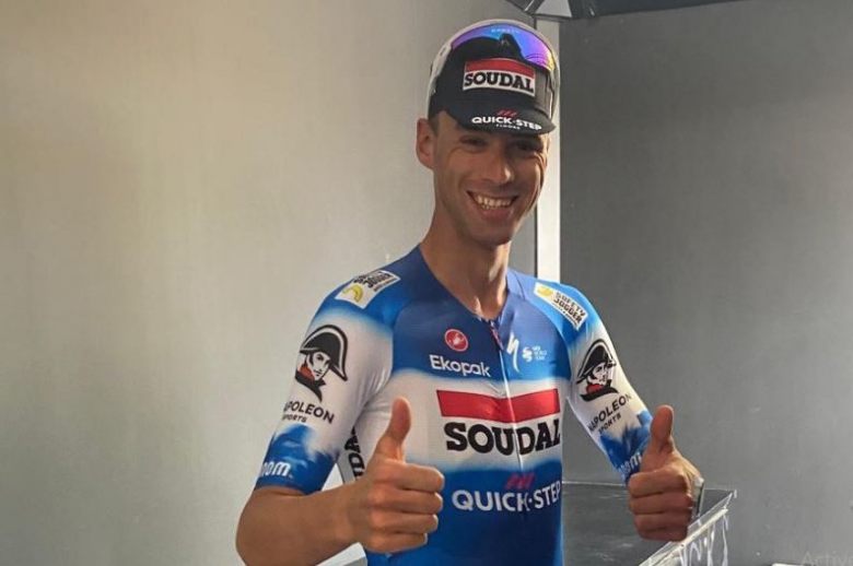 4 Jours de DunkerqueWarre Vangheluwe (Soudal Quick-Step) était forcément ému après sa victoire sur la 4e étape des 4 Jours de Dunkerque, et le néo-pro belge de 22 ans avait au moins trois bonnes raisons de savourer ce moment magique. D'abord, il s'agit tout simplement de sa première victoire chez les professionnels, lui qui a signé au plus haut niveau chez Patrick Lefévère en 2024, après avoir fait ses classes en 2023 dans l'équipe de développement.