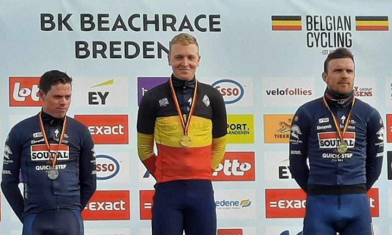 Beach RaceTim Merlier n'était pas à Hulst samedi pour disputer la 11e manche de la Coupe du monde de cyclo-cross, et pour cause : le sprinteur participait au même moment aux Championnats de Belgique de Beach Race, qui avaient lieu à Bredene. Et le Belge a bien fait d'opter pour cette compétition puisqu'il est devenu champion national à l'issue des 52 kilomètres de course ! Le coureur de 31 ans est sorti vainqueur du combat qui l'a opposé à deux de ses coéquipiers de la Soudal Quick-Step, en l'occurrence le tenant du titre Jordi Warlop, deuxième de cette édition 2023, et Bert Van Lerberghe, troisième comme l'an passé. Après le podium, Tim Merlier a livré son sentiment sur le site du Wolfpack.