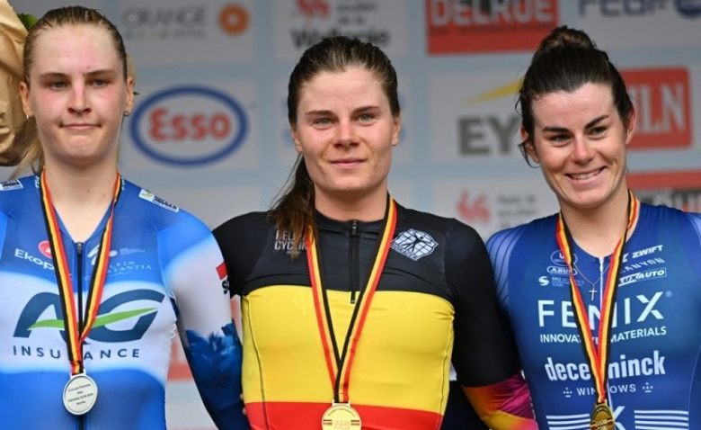 Route - BelgiqueEt de six titres de championne de Belgique du contre-la-montre pour Lotte Kopecky ! Invaincue en chrono sur ses Championnats nationaux depuis 2019, la numéro 1 mondiale s'est à nouveau montrée la plus forte ce jeudi, parcourant les 19,3 kilomètres autour de Binche à près de 45 km/h de moyenne. Sur la ligne, l'addition est salée pour les adversaires de la coureuse de la Team SD Worx-Protime puisque Marthe Goossens (AG Insurance-Soudal Team), médaillée d'argent et sacrée dans la catégorie Espoirs, et Marion Norbert-Riberolle (Fenix-Deceuninck Development Team), médaillée de bronze, lui ont respectivement concédé 43 et 44 secondes.