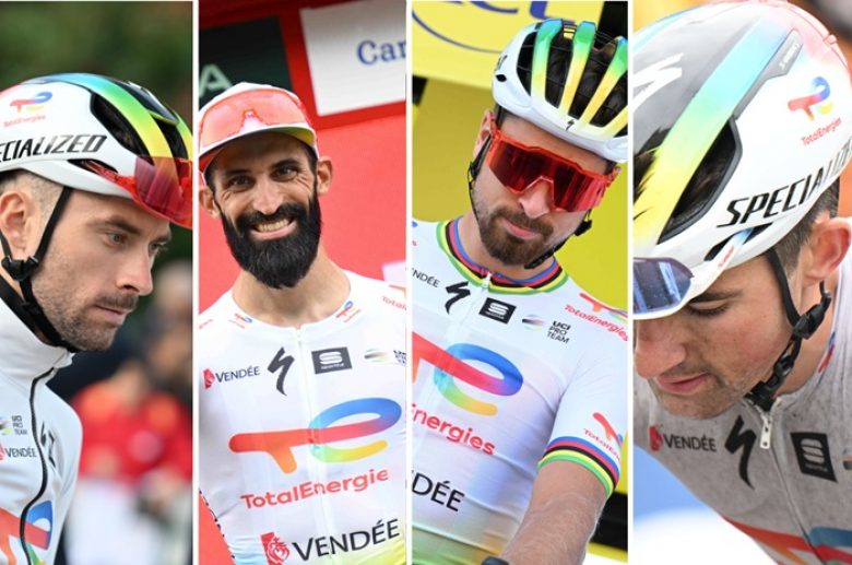 Route - BilanOn a envie de retenir les coups d’éclat offerts en 2023 par la formation TotalEnergies. Mais ce serait omettre les errements du début de saison, quelques paris de la formation vendéenne non récompensés, et une bataille finale perdue au classement ProTeams. Une saison en dent de scie, ou plutôt qui a mal commencé et plutôt bien fini. Car animer les routes du Tour de France et s’imposer sur la Vuelta ont eu de quoi satisfaire l'équipe. Passer ces embellies, il n'est plus resté grand chose à se mettre sous la dent pour la structure emmenée par Jean-René Bernaudeau. Des résusltats satisfaisants en Afrique - trois étapes et le général sur la Tropicale Amissa Bongo -, et la victoire de Valentin Ferron sur Paris-Camembert, sont venus élever le bilan à 8 victoires au compteur, soit une 22e place au classement UCI et une 4e en ProTeam.