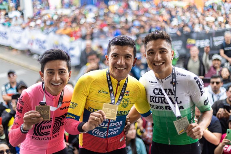 Première course sous son nouveau maillot et première victoire pour Richard Carapaz (29 ans) ! Le grimpeur d'EF Education-EasyPost a remporté le titre de champion d'Équateur sur route en devançant au sprint Jefferson Alveiro Cepeda (Caja Rural-Seguros RGA). Il s'agit de la première victoire du natif d'El Carmelo lors de cette course en ligne, et il portera ainsi le maillot distinctif de champion d'Équateur durant la saison 2023. Jefferson Alexander Cepeda (EF Education-EasyPost), qui a réalisé un beau travail pour son leader Richard Carapaz, complète le podium en prenant la 3e place.