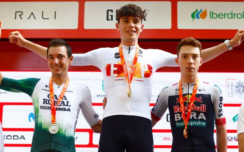 Championnats d'EspagneCarton plein pour l'équipe Movistar sur les courses en ligne du Championnat d'Espagne. Quelques heures après le sacre de Sara Martin, c'est son homologue masculin de la WorldTeam ibérique Ivan Romeo qui s'est imposé ce dimanche pour décrocher à 21 ans son tout premier titre national chez les Elites. A l'issue d'un parcours long de 191.4 km, le natif de Valladolid a réalisé un numéro en solitaire dans les 20 dernières bornes pour devenir champion d'Espagne à Grenade, devançant de 56 secondes Fernando Barceló (Caja Rural-Seguros RGA) et de 1'53" Roger Adrià (Red Bull-BORA-hansgrohe), qui a réglé au sprint Juan Pedro Lopez (Lidl-Trek) pour la 3e place.
