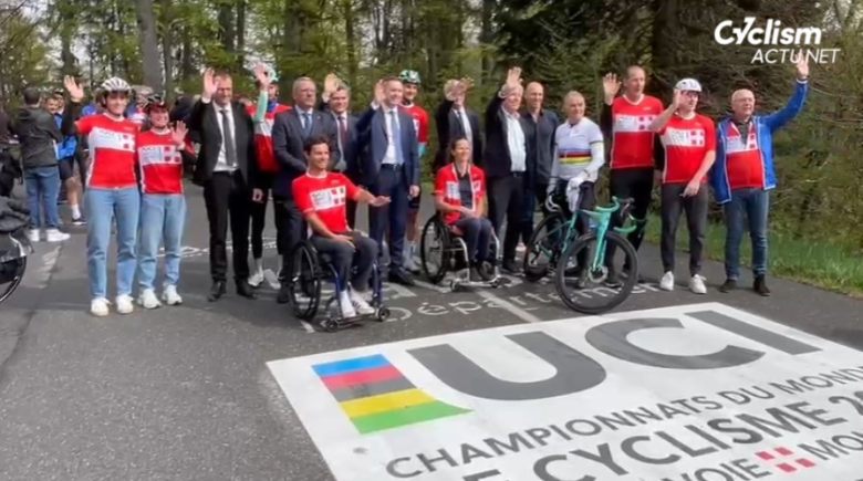 Du beau monde était présent pour l'occasion, avec évidemment Bernaud Hinault, auréolé de son maillot de champion du monde unique pour effectuer cette reconnaissance et gravir la Côte de Domancy en compagnie des coureurs français du coin : le prometteur Paul Seixas ainsi qu'Aurélien Paret-Peintre, de l'équipe Decathlon AG2R La Mondiale. David Lappartient, président de l'UCI, Michel Callot, président de la Fédération Française de Cyclisme, ainsi que Martial Saddier, président du Conseil départemental de la Haute-Savoie, étaient eux aussi logiquement de la partie.