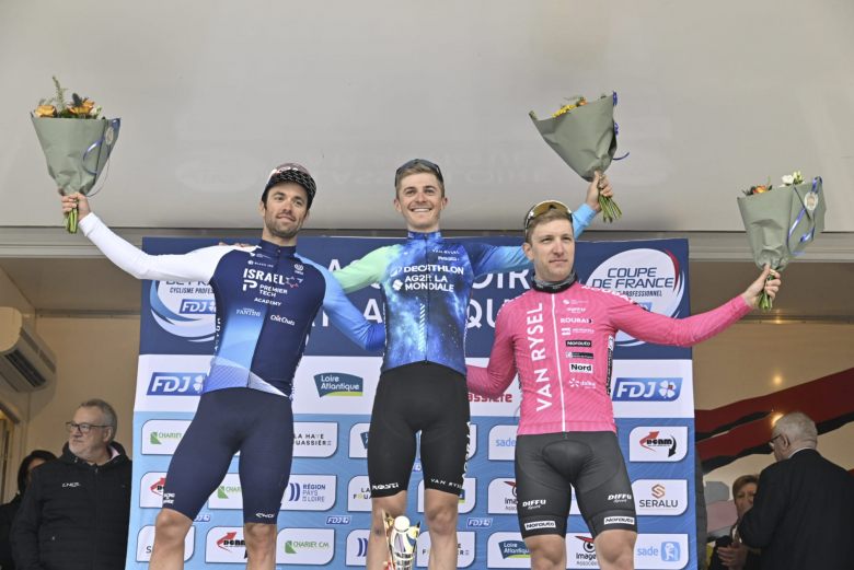 Classic Loire-AtlantiqueLe troisième acte de la Coupe de France FDJ se tenait ce samedi à l'occasion de la 24e édition de la Classic Loire Atlantique. Deux jours après le Grand Prix de Denain - Porte du Hainaut, le peloton s'est donné rendez-vous autour de la Haye-Fouassière sur un circuit de 16,8 kilomètres à réaliser onze fois, soit, en tout, 182,8 kilomètres à parcourir. Et à ce jeu-là, c'est Paul Lapeira (Decathlon AG2R La Mondiale) qui s'est montré le plus fort. Le Manchois de 23 ans est parvenu à s'extirper du groupe de tête à plus de 20 kilomètres de l'arrivée. Il a finalement franchi la ligne en solitaire, succédant à Axel Zingle (Cofidis), vainqueur l'an passé. Sur la ligne, il devance Tom van Asbroeck (Israel-Premier Tech Academy) et Emmanuel Morin (Van Rysel Roubaix). Il s'agit de la première victoire de sa saison, après deux Top 10 sur la Faun Drôme Classic et sur le Trophée Laigueglia fin février.