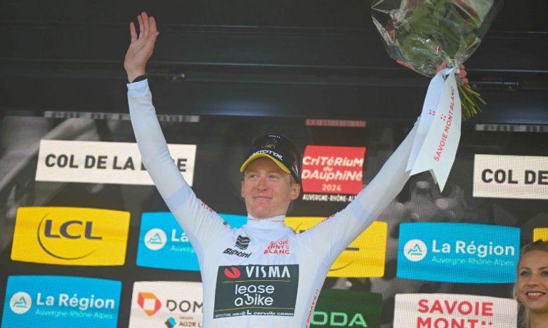 Critérium du DauphinéMatteo Jorgenson a terminé 3e de cette 2e étape du Critérium du Dauphiné, une belle opération pour le récent vainqueur de Paris-Nice, qui a récupéré 4 secondes de bonification... peut-être précieuses pour le classement général final. Le jeune Américain de la Visma | Lease a Bike en a également profité pour récupérer le maillot blanc de meilleur jeune.