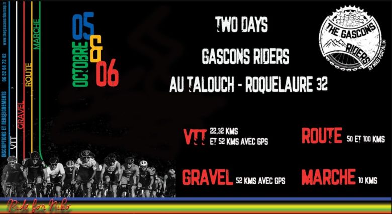 CycloLes Two Days Gascons Riders, événement sportif et convivial en hommage à Nicolas Portal, célèbrent leur quatrième édition les 5 et 6 octobre prochains, soit le week-end prochain. Créés en 2020 pour perpétuer la mémoire de l'ancien directeur sportif de l'équipe Team Sky puis INEOS, décédé brutalement à 40 ans en mars 2020, ces deux journées placées sous le signe de la convivialité, invitent tous les passionnés de vélo et de marche à venir profiter de ce nouveau site unique. Au programme : deux circuits de route, trois circuits de VTT et depuis l’an dernier, un circuit de Gravel ! Après trois années réussies au Domaine du Castagné, la manifestation quitte le Gers armagnacais pour s’installer à Roquelaure, sur le site du camping Le Talouch. Toutes les infos et le programme complet du week-end sont sur : https://www.thegasconsridersnp.fr/inscription/.