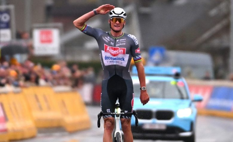 Après plusieurs accélérations de Matteo Jorgenson, Valentin Madouas ou Stefan Küng, le peloton se réorganise. A ce moment-là, Aimé De Gendt (Cofidis) et Casper Pedersen (Soudal Quick-Step) anticipent la bagarre et prennent 30 secondes d'avance. Dans le Taaienberg, à 80 kilomètres de l'arrivée, Mads Pedersen passe à l'attaque ! Une violente attaque du Danois, avec seul Mathieu van der Poel dans la roue. Filippo Ganna accélère, mais avec un temps de retard, Jorgenson est un peu plus loin et Van Aert est... introuvable !