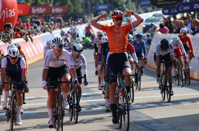 Un incident sans conséquence sur le résultat final, le sprint entre les meilleurs étant déjà lancé devant. La championne des Pays-Bas Juniors 2024 a devancé sur la ligne l'Allemande Messane Bräutigam et la Tchèque Stepanka Dubcova, cette dernière privant la Française Célia Géry de la médaille de bronze pour quelques centimètres seulement après visionnage de la photo-finish. L'équipe des Pays-Bas confirme sa domination sur le cyclisme féminin après avoir remporté tous les titres des courses en lignes : Junior (Puck Langenbarg), Espoir (Sofie van Rooijen) et Elite (Lorena Wiebes).