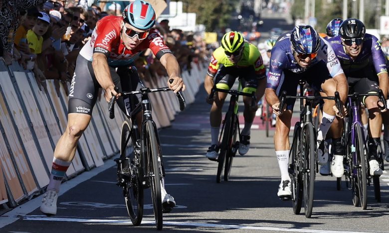 Les offensives se poursuivent, mais personne ne fait une vraie, différence. On se dirige donc vers une arrivée au sprint. Kaden Groves (Alpecin-Deceuninck) est parfaitement emmené et lance le sprint sur cette arrivée particulière en faux-plat montant. Alors que l'on voit une fusée rouge arrivée de l'arrière, il s'agit d'Arnaud De Lie (Lotto Dstny), très mal placé, le Belge remonte tout le monde et semble se diriger vers une victoire facile. Mais, à 50 mètres de la ligne, il déchausse, on croit alors que tout est fini pour lui, malgré tout, il continue sur une jambe et parvient à s'imposer de justesse devant Kaden Groves (Alpecin-Deceuninck), Florian Sénéchal (Soudal Quick-Step), Christophe Laporte (Jumbo-Visma) et Arne Marit (Intermarché-Circus-Wanty).