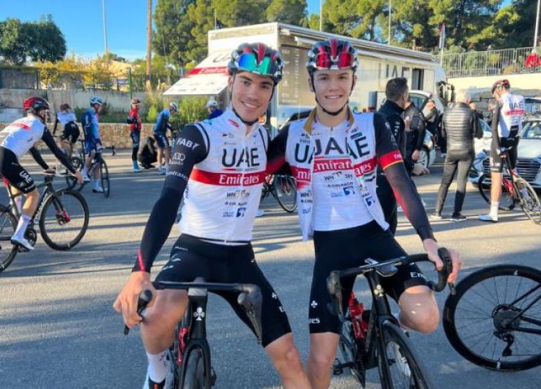RouteEn plein stage de pré-saison jusqu'au 21 décembre du côté d'Alicante, sur la côte orientale de l'Espagne, la formation UAE Team Emirates a accueilli un invité très spécial durant la semaine. Au sein de leur camp de base, Tadej Pogacar, Juan Ayuso et consort ont eu l'occasion de s'entraîner avec Marcos Freire, le fils de 16 ans de la légende ibérique Oscar Freire. L'ancien triple champion du monde est en effet un ami très proche du manager général de l'écurie du WorldTour, Joxean Fernández Matxin, qui avait été l'un de ses premiers directeurs sportifs en amateurs, comme il l'a rappelé en publiant sur Instagram une photo datant de 1997 ! 25 ans après, le fils semble donc bien parti pour suivre les traces de son père, puisqu'il va notamment intégrer l'équipe espagnole Junior Bathco Cycling Team en 2023, dans laquelle a couru un certain Ayuso en 2019-2020...