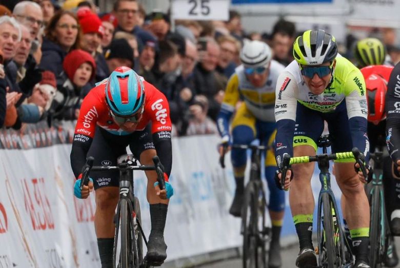 GP MonséréCaleb Ewan n'est décidemment pas en réussite avec les photo-finish... Déjà déclaré perdant face à Tim Merlier (Soudal Quick-Step) sur la première étape de l'UAE Tour pour quelques millimètres, le sprinteur de la Lotto Dstny a vécu la même mésaventure ce dimanche à l'arrivée du Grand Prix Jean-Pierre Monseré, en Belgique. Un temps annoncé vainqueur et même interviewé comme tel, le rapide coureur australien a finalement été déclaré deuxième derrière Gerben Thijssen (Intermarché-Circus-Wanty). "Oui, ce n'est pas génial... Cela semble être le thème de cette année. J'ai besoin de bras plus longs ou de sprinter plus vite, je pense... Mais c'est comme ça. Ma forme est bonne, seul mon sprint doit être amélioré. Ça, c'est sûr. J'espère gagner à nouveau bientôt", a-t-il déclaré après l'arrivée, un brin fataliste.