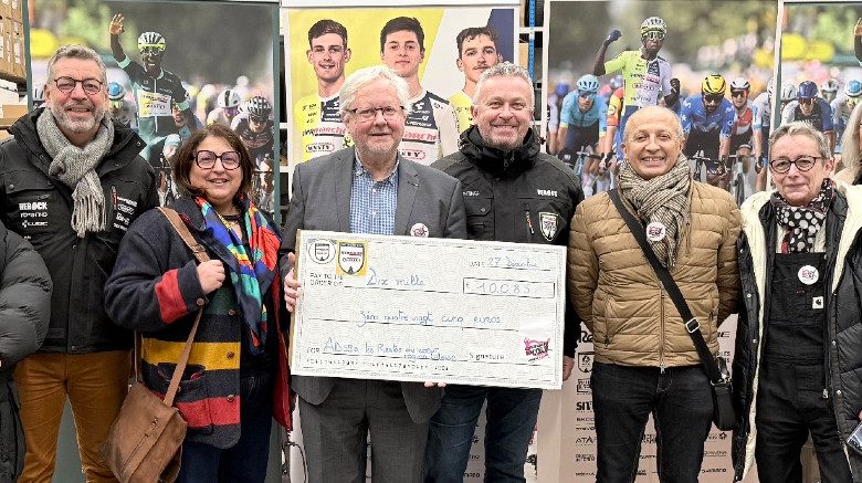 RoutePour fêter ses 50 ans, l’équipe Intermarché-Wanty a réalisé une cagnotte participative durant le Tour de France pour soutenir les Restos du Coeur. Ce vendredi 27 décembre 2024, l’équipe Intermarché-Wanty a reçu Patrick Banneux (président), Zohra Zarouri (directrice) et plusieurs bénévoles de l’Association Départementale 59A des Restos du Coeur pour leur remettre le chèque des mains de Jean-François Bourlart, manager général de l’équipe Intermarché-Wanty. La remise de ce chèque de 10 085 € à l’Association Départementale 59A des Restos du Coeur conclut une série d’actions qui ont permis de mettre les Restos du Coeur en avant, et de faire profiter de nombreux jeunes bénéficiaires des Restos du Coeur d’un aperçu dans les coulisses de l’équipe World Team belge durant les journées de repos du Tour de France 2024. Grâce à la générosité de plus de 400 donateurs, l’objectif des 10 000€ de collecte a été atteint !