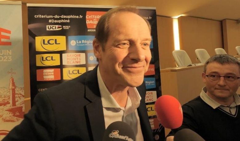 ITW/Le MagLe décor est planté ! Ce jeudi, à l'occasion d'une conférence de presse, le parcours de la 75e édition du Critérium du Dauphiné - qui aura lieu du dimanche 4 juin au dimanche 11 - a été dévoilé par l'organisateur de la course, Amaury Sport Organisation (ASO), avec à sa tête Christian Prudhomme. "Le concentré de montagne qu’on évoque chaque année est encore plus fort en 2023. Il part du Massif central avec des étapes vallonnées dès le début et puis un final en feu d’artifice avec trois arrivées au sommet vendredi, samedi et dimanche, à Crest-Voland d’abord, ensuite un final que je n’aurais jamais imaginé à la Croix de Fer sur un des cols les plus rudes de France et enfin le retour de la trilogie de la Chartreuse qui a tant fait rêver dans le passé avec la montée au dessus de Grenoble par la Bastille", explique Prudhomme notamment au micro de Cyclism'Actu.