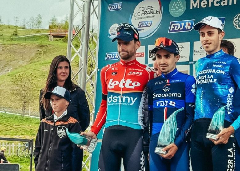 Harm Vanhoucke sur le podium derrière Lenny Martinez