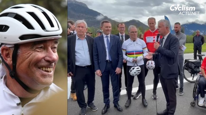 Mondiaux 2027 UCICe mardi 15 avril marquait une journée très importante pour le cyclisme français et les futurs Super Mondiaux de cyclisme UCI 2027, dont la 2e édition après celle de Glasgow 2023 aura lieu du 24 août au 5 septembre 2027 en Haute-Savoie ! La présentation officielle de ces Championnats du Monde spéciaux avait lieu à la Clé des Arts à Sallanches, et la conférence de presse de 14h a permis de révéler tous les détails de l'évènement, organisé sous la forme d'une grande compétition regroupant l'ensemble des disciplines du vélo (VTT, route, BMX, Piste...). Présent sur place, Cyclism'Actu vous fait vivre cette journée spéciale de l'intérieur, avec ce mardi matin une reconnaissance du parcours des Mondiaux de cyclisme sur route, qui reprend le circuit sur lequel avait été sacré Bernard Hinault en 1980, il y a 45 ans. Au programme, 266 km avec 20 tours de 13,3 km et un énorme dénivelé de 5700 m grâce à la Côte de Domancy. Ambassadeur de l'évènement, le Blaireau était forcément présent et s'est exprimé après avoir monté la fameuse difficulté, qu'il n'avait jamais remonté sur un vélo depuis ce 31 août 1980...