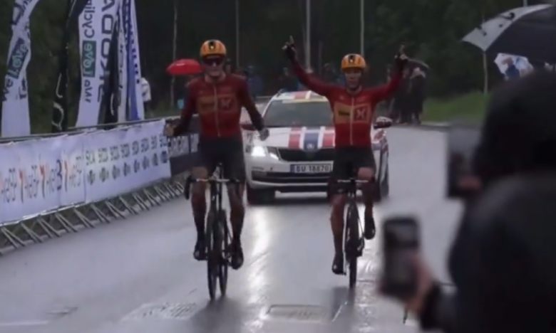 Route - NorvègeSur les Championnats de Norvège, le suspens n'était pas forcémment au rendez-vous, avec la prédominance de l'équipe Uno-X Mobility. Avec 9 coureurs placés dans les 15 premiers, l'équipe scandinave a littéralement écrasé la course, puisqu'elle a réussi un quadruplé. Mais ce n'est pas cette performance qui a attiré l'oeil des spectateurs, mais bien le beau geste à l'arrivée de Fredrik Dversnes, qui a offert le titre à Markus Hoelgaard. Les deux coureurs ont passé la ligne d'arrivée ensemble, mais Dvernes, qui avait été sacré l'an passé, a laissé son coéquipier venir chercher ce maillot tant convoité. Le podium du jour est complété par Rasmus Tiller (Uno-X Mobility), qui avait lui été titré en 2022.