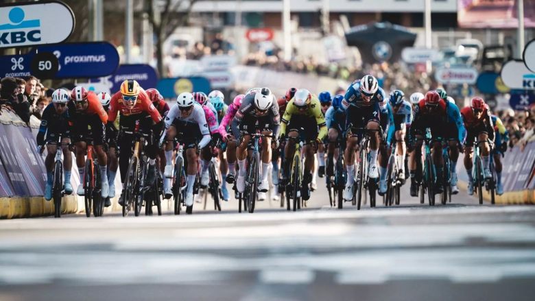 Le premier peloton rattrape Tarling puis l'échappée alors que le second groupe se donne à fond pour essayer de revenir. Après des gros efforts, le second groupe parvient à revenir alors qu'Arnaud De Lie (Lotto) est lâché. Le peloton se désorganise à l'approche du Muur van Geraardsbergen, le plus dur de la course. Tratnik, vainqueur l'année dernière, est victime d'une crevaison juste avant le Muur. Tim Wellens (UAE Team Emirates XRG) attaque, mais se fait contrer par Mathias Vacek (Lidl-Trek). Les meilleures impressions sont laissées par Vacek et Jorgenson, qui semble plus aérien que Wout Van Aert !