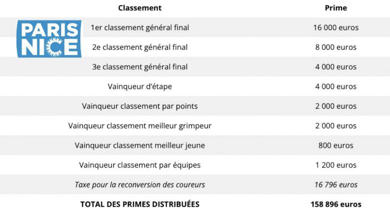 Le montant total des Prix du 81e Paris-Nice :
