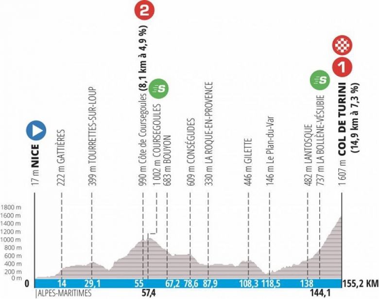 Nice - Col de Turini / La Bollène-Vésubie, 155,2 km (départ à 10h40, arrivée vers 14h50)