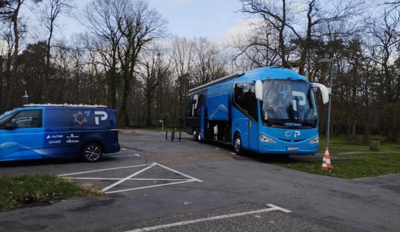 Paris-NiceTout le monde l'aura remarqué au départ de ce 82e Paris-Nice, dimanche aux Mureaux ! Sur le parking bus, toutes les équipes étaient représentées, sauf la formation Israël-Premier Tech. La raison ? Comme le montre et confirme cette photo de Cyclism'Actu, le bus de la formation israélienne - financée en grande partie par deux hommes d'affaires du pays, dont Sylvan Adams - n'est pas ses "compères" car soumise à des conditions de sécurité particulières et renforcées sur ce Paris-Nice. Du coup, la voilà à l’écart du "paddock" accessible au public et où tous les autres bus étaient regroupés.