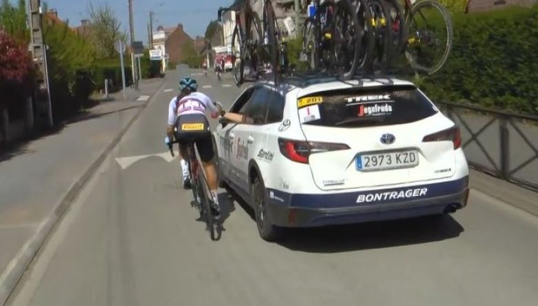 Elisa Balsamo ne gagnera pas Paris-Roubaix Femmes avec Zwift 2022 ! La championne du monde a été disqualifiée par le jury des commissaires pour un bidon collé. En poursuite derrière le groupe des favorites après avoir été victime d'une crevaison, l'Italienne de la Trek-Segafredo est restée trop longtemps accrochée à sa voiture, une manoeuvre jugée irrégulière par les commissaires, qui n'ont pas hésité à la mettre hors course. Pour rappel, Elisa Balsamo est l'une des femmes de ce début de saison, avec déjà quatre succès, dont Gand-Wevelgem.
