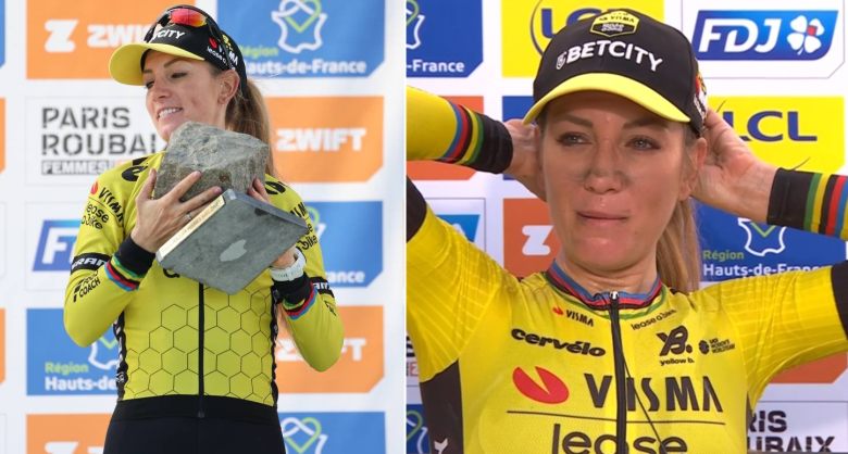 Après la course, la Française est revenue sur sa performance : "C’était ma première fois, mais peut-être aussi la dernière. C’était tellement dur. J’essayais simplement de survivre sur les secteurs pavés. Je suis tombée juste avant le secteur de Mons-en-Pévèle, donc j’ai dû faire l'effort pour revenir. Quand je suis revenue, j’ai simplement tenté une attaque. J’ai creusé un écart et j’ai tout donné jusqu’à l’arrivée. Gagner ici, c’est incroyable. Mon compagnon (Dylan van Baarle) a gagné Paris-Roubaix il y a trois ans, maintenant moi aussi. Donc on a deux pavés à la maison. C’est plutôt cool".