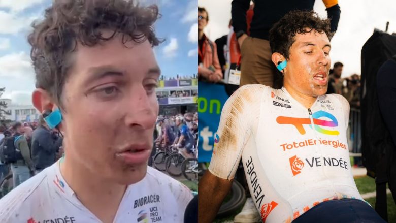 Après l’arrivée, le coureur de TotalEnergies affirme : "C’était mon premier Paris-Roubaix, ça a roulé à fond tout le temps avec le vent dans le dos, c’était horrible, je termine dans un état... Je suis plutôt agile sur le vélo, donc quand j’ai vu le premier secteur plein de boue, je me suis dit ‘ah ouais, pas mal !’. Je voyais plusieurs gars en difficulté, donc je me suis dit que ça pouvait m’avantager, mais au final, la plupart des secteurs étaient secs. La Trouée d’Arenberg, c’est horrible comme secteur. Il n’a rien à voir avec les autres : tu ne sais même pas où tu pédales. Je suis fier de ma course parce qu’avec le niveau et la vitesse qu’il y a maintenant, ça devient de plus en plus dur chaque année. Là, ça roulait à fond toute la journée. Quarante bornes avant le premier secteur, tout le monde frottait déjà pour se placer", explique-t-il.