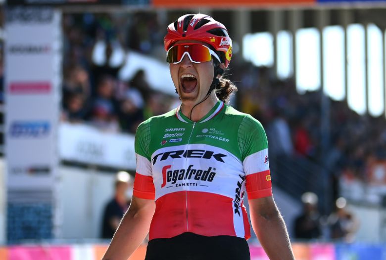 Elisa Longo-Borghini savoure sa victoire sur Paris-Roubaix