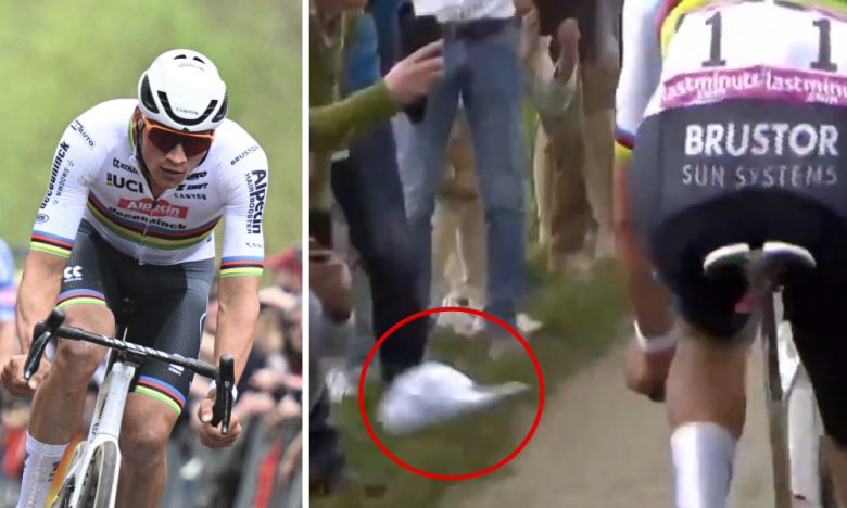 Les images ont été capturées à la télévision à 42 kilomètres de l'arrivée, tandis que MVDP était déjà à l'avant et se dirigeait vers sa deuxième victoire consécutive sur l'Enfer du Nord. Une spectatrice, à gauche du Néerlandais, a lancé une casquette cycliste vers les roues du coureur. Heureusement pour Mathieu van der Poel, plus de peur que de mal, puisque la casquette ne s'est pas bloquée dans sa roue. Mathieu van der Poel a aussi été arrosé de bière. L'auteur des jets de houblon a également été identifié et doit s'attendre à des poursuites.