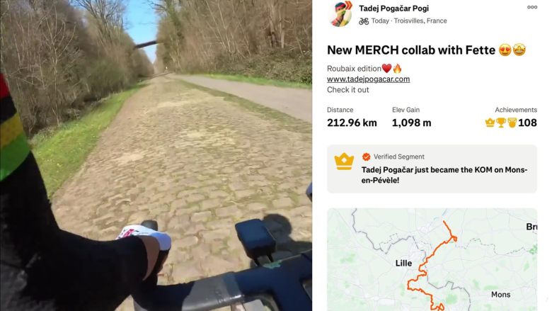 Tadej Pogacar en reconnaissance sur les pavés... et a pris 3 KOM