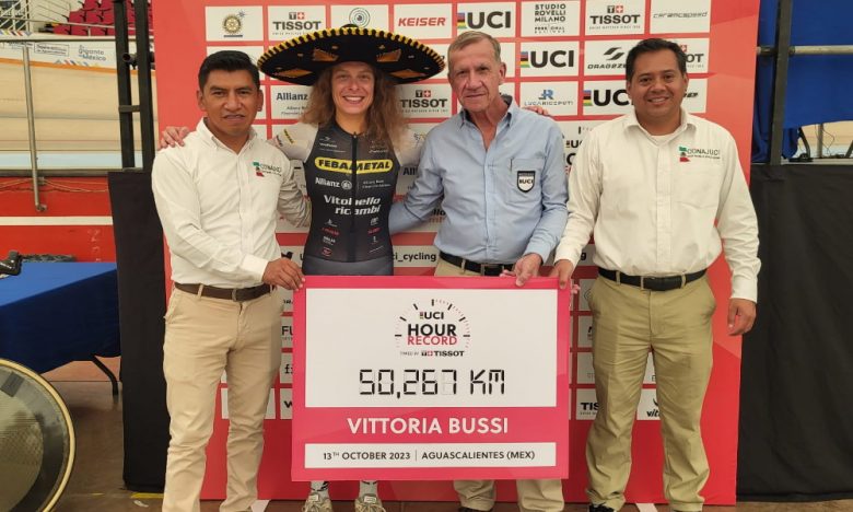 Record de l'HeureVittoria Bussi a battu le Record de l’Heure UCI ! En parcourant la distance de 50,267 kilomètres sur la piste du Velodromo Bicentenario d’Aguascalientes, au Mexique, elle est la première femme à franchir la barre des 50 kilomètres en une heure. Cette performance extraordinaire permet à la coureuse italienne – qui avait déjà détenu le record de septembre 2018 à septembre 2021 (avec 48,007 km) – de ravir le record à la Néerlandaise Ellen van Dijk, qui avait parcouru 49,254 kilomètres le 23 mai 2022 sur le Tissot Vélodrome de Granges, en Suisse.