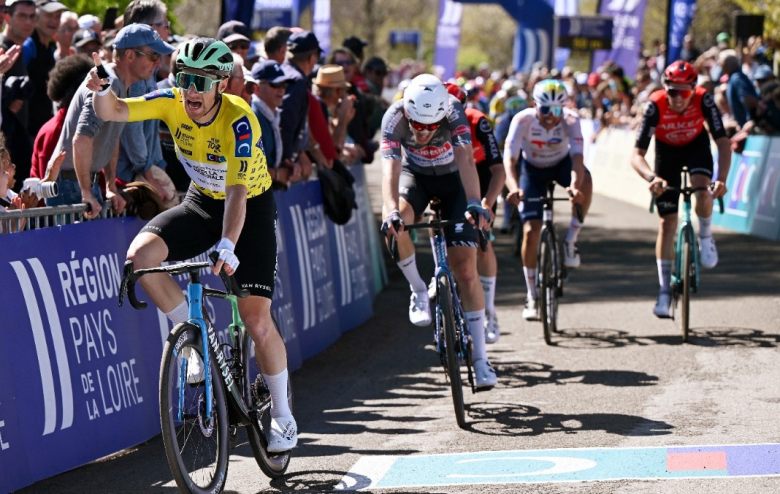 Région Pays de Loire TourLa 3e étape de ce Région Pays de la Loire Tour promettait du spectacle ce jeudi entre Tiercé et Hambers, où l'arrivée était jugée au sommet de La Butte de Montaigu (600 mètres à 6%) à l'issue d'un circuit final exigeant à parcourir 5 fois. Mais si les attaques se sont effectivement multipliées, offrant le scénario débridé et animé attendu, le peloton est finalement arrivé groupé au pied de la dernière difficulté, et c'est donc un sprint entre costaud et en bosse qui a décidé du vainqueur... qui n'est autre que le porteur du maillot jaune Sam Bennett ! Extrêmement solide malgré ce parcours qui ne lui était pourtant pas favorable sur le papier, le sprinteur irlandais s'est transcendé dans le dernier kilomètre, résistant au train infernal d'Ewen Costiou (Arkéa - B&B Hotels) avant de déborder le Français au prix d'un violent effort. Avec ce 2 succès de la semaine, son 4e en 2025, le leader de la Decathlon AG2R La Mondiale conforte logiquement son maillot de leader avant la 4e et dernière étape vendredi.