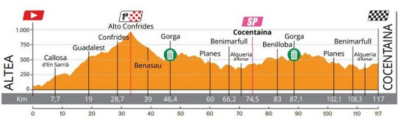 Altea - Cocentaina, 117 km (départ à 13h40, arrivée vers 16h55)