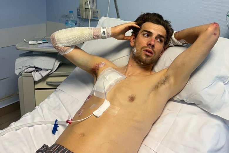 RoutePneumothorax, plusieurs côtes cassées, deux fractures vertébrales dorsales... Un bilan médical qui fait froid dans le dos. Steff Cras est l'une si ce n'est la principale victime de la terrible chute de la 4e étape du Tour du Pays basque, même si l'état de santé du Belge de 28 ans a moins fait parler que ceux de Jonas Vingegaard (Visma | Lease a Bike), Primoz Roglic (BORA - hansgrohe) et Remco Evenepoel (Soudal Quick-Step) dans les médias. Après quatre nuits à l'hôpital de Saint-Sébastien, le coureur de la TotalEnergies est rentré en Belgique ce lundi pour réaliser de nouveaux examens à Herentals. Entre-temps, le 11e du Tour d'Espagne 2023 s'est exprimé pour la première fois sur cet incident et la manière dont il l'avait vécu. "J’ai frôlé la mort", a-t-il témoigné au média belge La Dernière Heure.