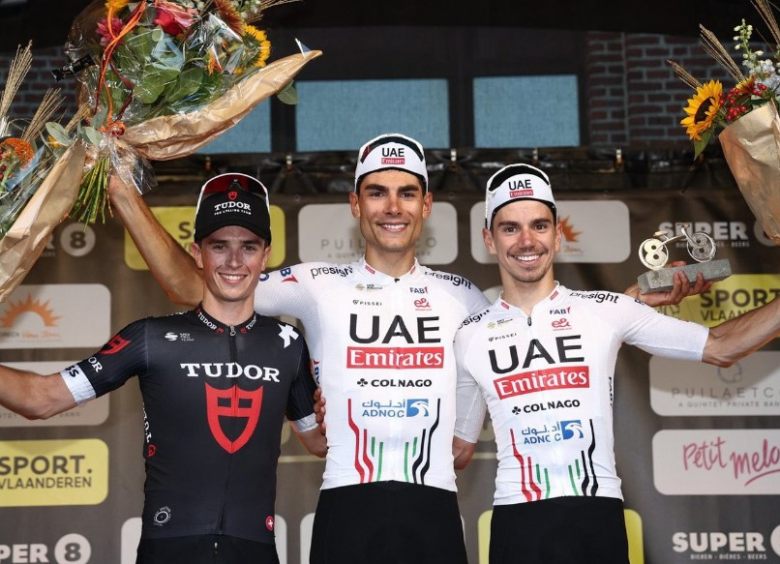 Super 8 ClassicA 24 ans, Filippo Baroncini a inscrit ce samedi une première ligne à son palmarès chez les professionnels. Le champion du monde Espoirs en 2021 a remporté en solitaire la Super 8 Classic après être sorti en facteur du groupe de tête à 14 kilomètres de l'arrivée. Une victoire qui va faire du bien au prometteur coureur italien, excellent rouleur et très bon baroudeur mais qui a mis du temps avant de confirmer tout son potentiel. Inconstant depuis ses débuts chez Lidl-Trek en 2022, le Transalpin réalise une première saison solide depuis son arrivée chez UAE Team Emirates cet hiver, mais semble encore avoir passé un cap après avoir disputé La Vuelta 2024, son premier Grand Tour en carrière. Filippo Baroncini a en plus eu le plaisir de partager ce podium avec son coéquipier Rui Oliveira, 3e sur la ligne derrière Rick Pluimers (Tudor).