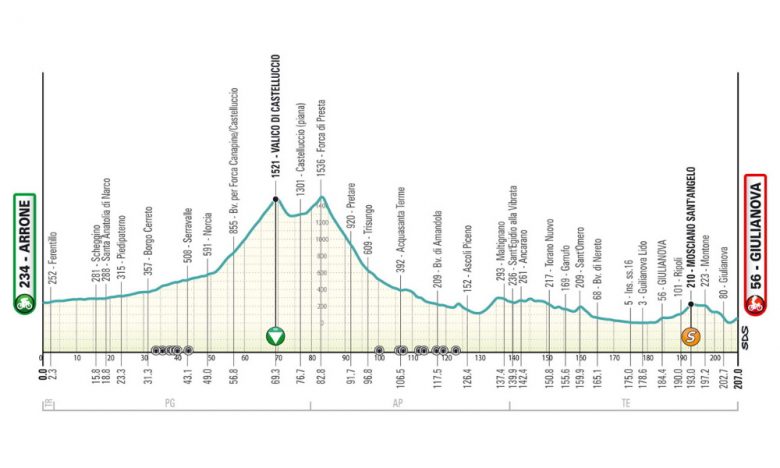 Tirreno-AdriaticoCette fois-ci, ça devrait être trop dur pour les purs sprinteurs ! Après deux sprints massifs ces deux derniers jours, la 4e étape de Tirreno-Adriatico va offrir un parcours très indécis ce jeudi mais à priori favorable aux meilleurs baroudeurs de la course italienne. Si le final n'a certes rien d'insurmontable malgré des derniers kilomètres loin d'être plats vers Giulianova, la présence du Valico di Castelluccio (17,2 km à 5% de moyenne) au tiers des 207 km du parcours devrait permettre à une belle échappée de prendre le large. Qui roulera derrière elle ensuite, alors que les grosses cuisses du peloton auront sûrement été distancées ? C'est tout l'enjeu de cette 4e étape, dont il est difficile de prédire un scénario à l'avance.