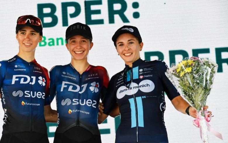 Tour d'ÉmilieJuliette Labous est venue conclure son beau mois de septembre - 5e de la Classic Lorient Agglomération, 4e du Tour de Romandie, championne d'Europe du relais mixte à Drenthe - avec un superbe podium sur le Tour d'Émilie version féminine ce samedi ! L'Italie réussit particulièrement à la Française de 24 ans en 2023, puisqu'elle n'avait pu monter sur le podium d'une course cette saison que sur le Giro Donne début juillet. Offensive dans le final, la coureuse du Team dsm-firmenich n'a rien pu faire face à la redoutable paire de la FDJ-SUEZ composée de Cecilie Uttrup Ludwig et de Marta Cavalli. Terminant à 16 secondes de la Danoise et à 11 de l'Italienne, la Bisontine se contentait largement de ce résultat après l'arrivée.
