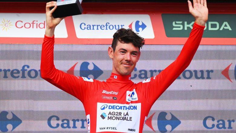 Tour d'EspagneBen O'Connor (Decathlon AG2R La Mondiale) a réalisé un exploit ce jeudi sur les routes du Tour d'Espagne ! Auteur d'un impressionnant numéro sur les routes de l'Andalousie, l'Australien a levé les bras, devenant ainsi le 111e coureur de l'histoire à remporter une étape sur les trois Grands Tours, mais aussi pris le maillot rouge. N'ayant jamais faibli, le coureur de la Decathlon AG2R La Mondiale Team - qui faisait partie d'une échappée initialement composée de treize coureurs - a survolé cette 6e étape puisque son dauphin, l'Italien Marco Frigo (Israel-Premier Tech), est arrivé 4 minutes et 33 secondes et après lui ! Au général, l'Australien, annoncé leader de sa formation avant le départ de la course, possède 4'51'' d'avance sur Primoz Roglic (Red Bull-BORA-hansgrohe).