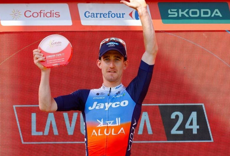 Tour d'EspagneLa plus belle victoire de sa carrière ! A 27 ans, Eddie Dunbar a remporté ce mercredi la 11e étape du Tour d'Espagne, réalisant un coup de maître dans le dernier kilomètre pour surprendre tous ses compagnons d'échappée avant le sprint final. Un succès libérateur qui intervient après plusieurs mois compliqué sur le plan des résultats, lui qui galérait à confirmer sa très bonne 7e place sur le Tour d'Italie 2023 qui l'avait propulsé sur le devant de la scène. Malchanceux suite à de nombreuses chutes, l'Irlandais de l'équipe Jayco-AlUla misait beaucoup sur cette Vuelta pour se relancer... et s'il a vite déchanté pour le général, c'est désormais chose faite grâce à cette victoire pleine de maîtrise. "C’est bizarre comment les choses se font parfois...", a-t-il confié, ému, en interview d'après-course.