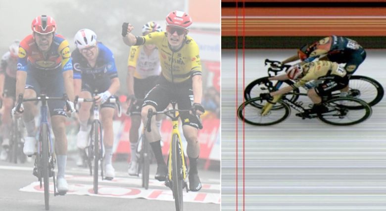 Après que le peloton a logiquement temporisé avant l'ascension finale pour permettre aux coureurs impliqués dans la chute de rentrer plus facilement, on a sans surprise assisté à une pure course de côte montée à un rythme effréné, la sélection se faisant uniquement par l'arrière dans ce col roulant de 10 bornes à 5,1%, où la route s'élevait progressivement. Un profil peu propice aux attaques, et ce n'est donc qu'à 500 mètres de l'arrivée que les hostilités se sont lancées, avec une accélération de Marc Soler (UAE Team Emirates-XRG) vite avortée. Un sprint explosif et en montée a conclu cette journée, et dans le brouillard, si l'Italien Ciccone a comme prévu pris les devants dans cette arrivée faite pour lui, il a finalement été remonté sur le fil et battu à la photo-finish par un Jonas Vingegaard bluffant sur ce type d'effort, le leader de la Visma rassurant totalement sur son état après sa chute.