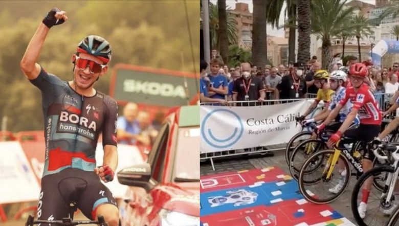 Tour d'EspagneEncore une journée folle sur cette 78e Vuelta, une de plus ! La 9e étape ce dimanche a été animée par le vent et les bordures, mais c'est finalement l'échappée qui s'est imposée au sommet du Collado de la Cruz de Caravaca, avec l'inévitable baroudeur Lennard Kämna ! L'Allemand de la BORA-hansgrohe s'est montré le plus fort des huit coureurs à l'avant dans la montée finale et complète ainsi sa collection de victoires sur les Grands Tours ! Matteo Sobrero (Team Jayco ALUla) et Chris Hamilton (Team dsm-firmenich) montent sur le podium. Les conditions météo ayant encore une fois rendu les routes des derniers kilomètres scabreuses, l'organisation a décidé de geler les temps dans les 2 derniers kms. Les favoris n'ont donc pas eu réellement l'occasion de s'attaquer ni de créer des différences, franchissant tranquillement la ligne une fois la marque franchie. Sepp Kuss (Jumbo-Visma) reste en Rouge avant la première journée de repos.