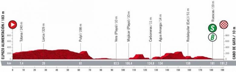 Tour d'EspagneUn peu de repos sur cette 77e Vuelta... enfin peut-être ? La 11e étape, disputée ce mercredi, entre Elpozo Alimentacio et Cabo de Gata (191,2 kilomètres) offre un profil parfait pour une étape de transition. Une journée qui devrait tout de même convenir aux sprinteurs. Et avec l'abandon de Sam Bennett (Bora-Hansgrohe), qui avait remporté les deux étapes promises aux hommes rapides, il y aura plusieurs prétendants à la victoire d'étape : Mads Pedersen (Trek-Segafredo), Tim Merlier (Alpecin-Deceuninck), Bryan Coquard (Cofidis) ou encore Mike Teunissen (Jumbo-Visma). À moins que les baroudeurs n'aillent au bout à Cabo de Gata. Les coureurs placés au classement général devront se montrer vigilants. On annonce un léger vent au cours des derniers kilomètres.