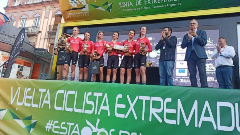 Tour d'EstrémadureTop départ pour la Vuelta Extremadura Féminas 2023 ! Disputée autour de Mérida (7 kilomètres), à l'occasion d'un contre-la-montre par équipes, la journée inaugurale est revenue à la formation Arkéa Pro Cycling Team. L'écurie française devance une autre formation tricolore : Stade Rochelais Charente-Maritime qui a ainsi pris la 2e place à quatre secondes de l'équipe lauréate. Marie-Morgane Le Deunff est la première leader du classement général.