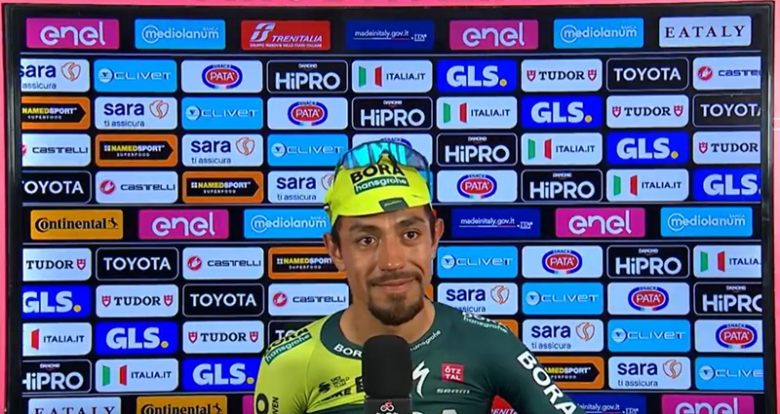 Tour d'ItalieC'est la première fois que Daniel Martinez se hisse sur le podium d'un Grand Tour. A presque dix minutes de Tadej Pogacar (UAE Team Emirates), le Colombien de la BORA-hansgrohe prend la place de dauphin sur le 107e Giro. Avant, il n'avait pas fait mieux qu'un Top 5 sur cette même épreuve il y a trois ans. "Merci à tous mes coéquipiers, ils ont fait un super travail tout au long de ces trois semaines, félicite Daniel Martinez en zone mixte. Je suis vraiment content. J'étais venu avec cet objectif, et je suis heureux de l'avoir réalisé."