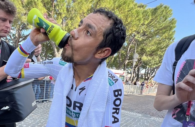 Tour d'ItalieDaniel Felipe Martinez n'est plus deuxième du classement général du Tour d'Italie à l'issue de la 14e étape. Avec seulement 16 secondes d'avance sur Geraint Thomas (INEOS Grenadiers) avant ce contre-la-montre tout plat sur lequel le Britannique pouvait exprimer toute sa puissance, le Colombien devait s'attendre à reculer d'une place dans la hiérarchie, et c'est effectivement ce qu'il s'est passé. Mais en ne concédant que 31 secondes au vainqueur du Tour de France 2018, le leader de la BORA-hansgrohe - 13e à 1'45" de son ancien coéquipier Filippo Ganna (INEOS Grenadiers) - a plus que limité les dégâts et pouvait donc afficher une certaine satisfaction au moment de débriefer ce second chrono du 107e Giro.