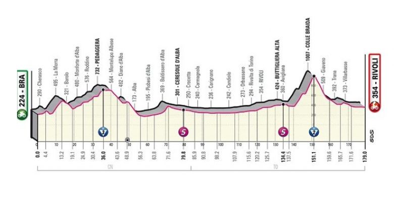 Tour d'ItalieAprès les malheurs de la formation INEOS Grenadiers et la victoire de Pascal Ackermann (UAE Team Emirates) au terme d'un sprint massif mercredi, la 12e étape du Tour d'Italie devrait favoriser les baroudeurs/grimpeurs jeudi sur les 179 kilomètres qui relieront les villes de Bra et Rivoli. Après un départ vallonné qui pourrait permettre à des hommes forts de constituer l'échappée, le reste de la journée sera totalement plate, à l'exception notable du juge de paix du jour, l'ascension du Colle Braida (9,8 km à 7,1%) et ses passages à près de 12% ! Avec un sommet situé à moins de 30 bornes de l'arrivée, les sprinteurs ne devraient pas être à la fête, alors que les coureurs du classement général voudront se préserver avant Crans Montana vendredi. Une aubaine pour des audacieux sachant grimper comme Ben Healy (EF Education-EasyPost) - qui fera office de favori s'il parvient à s'échapper-, Lorenzo Fortunato (EOLO-Kometa Cycling Team), Filippo Zana (Team Jayco-AlUla), Lorenzo Rota (Intermarché-Circus-Wanty) et bien d'autres...