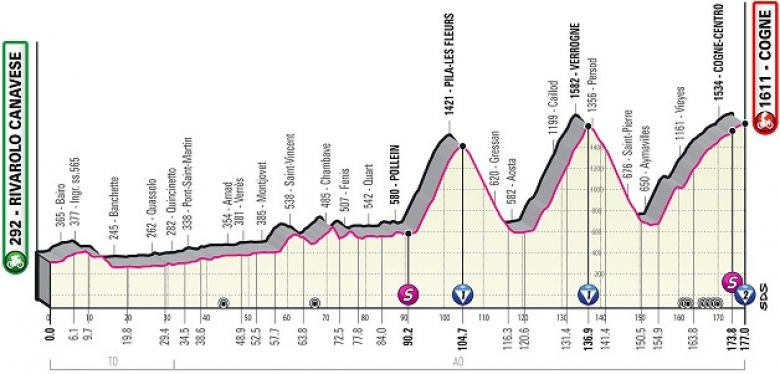 Rivarolo Canavese - Cogne, 177 km (départ réel à 12h25, arrivée vers 17h15)