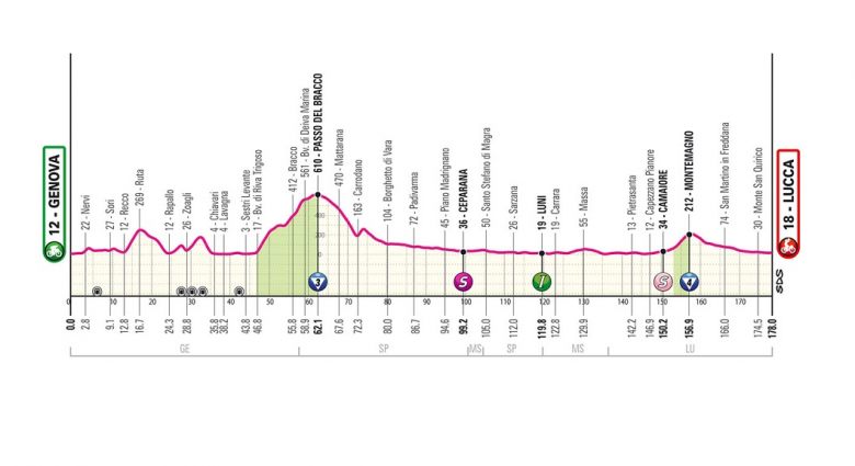 Tour d'ItaliePas avantagés par les deux premières étapes du Tour d'Italie, destinés aux puncheurs en ce qui concernait la 1ère et aux grimpeurs pour la 2e, les sprinteurs ont eu de quoi se rattraper depuis avec les arrivées à Fossano et Andora. Et ce n'est certainement pas fini pour les grosses cuisses du peloton puisque la journée de mercredi devrait également leur permettre de s'illustrer. En effet, la 5e étape tracée entre Genova et Lucca présente un profil presque parfait pour eux, même si certains - on pense notamment à Fabio Jakobsen (Team dsm-firmenich PostNL) - auront peut-être du mal à digérer Montemagno, une bosse de 3 kilomètres à 4,3% de moyenne située à une vingtaine de bornes de l'arrivée.